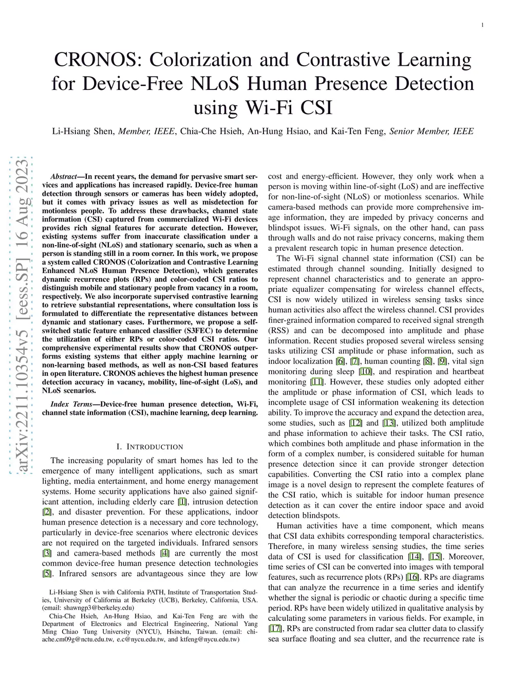 CRONOS: Colorization and Contrastive Learning for Device-Free NLoS Human