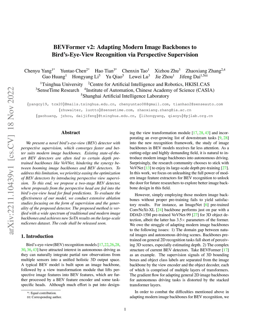 BEVFormer v2: Adapting Modern Image Backbones to Bird's-Eye-View