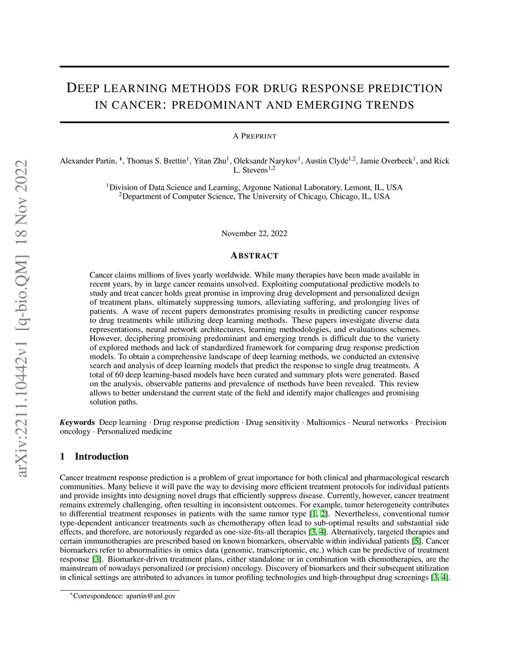 Cancer claims millions of lives yearly worldwide. While many therapies have been made available in recent years, by in large cancer remains unsolved. Exploiting computational predictive models to study and treat cancer holds great promise in improving drug development and personalized design of treatment plans, ultimately suppressing tumors, alleviating suffering, and prolonging lives of patients. A wave of recent papers demonstrates promising results in predicting cancer response to drug treatments while utilizing deep learning methods. These papers investigate diverse data representations, neural network architectures, learning methodologies, and evaluations schemes. However, deciphering promising predominant and emerging trends is difficult due to the variety of explored methods and lack of standardized framework for comparing drug response prediction models. To obtain a comprehensive landscape of deep learning methods, we conducted an extensive search and analysis of deep learning models that predict the response to single drug treatments. A total of 60 deep learning-based models have been curated and summary plots were generated. Based on the analysis, observable patterns and prevalence of methods have been revealed. This review allows to better understand the current state of the field and identify major challenges and promising solution paths.