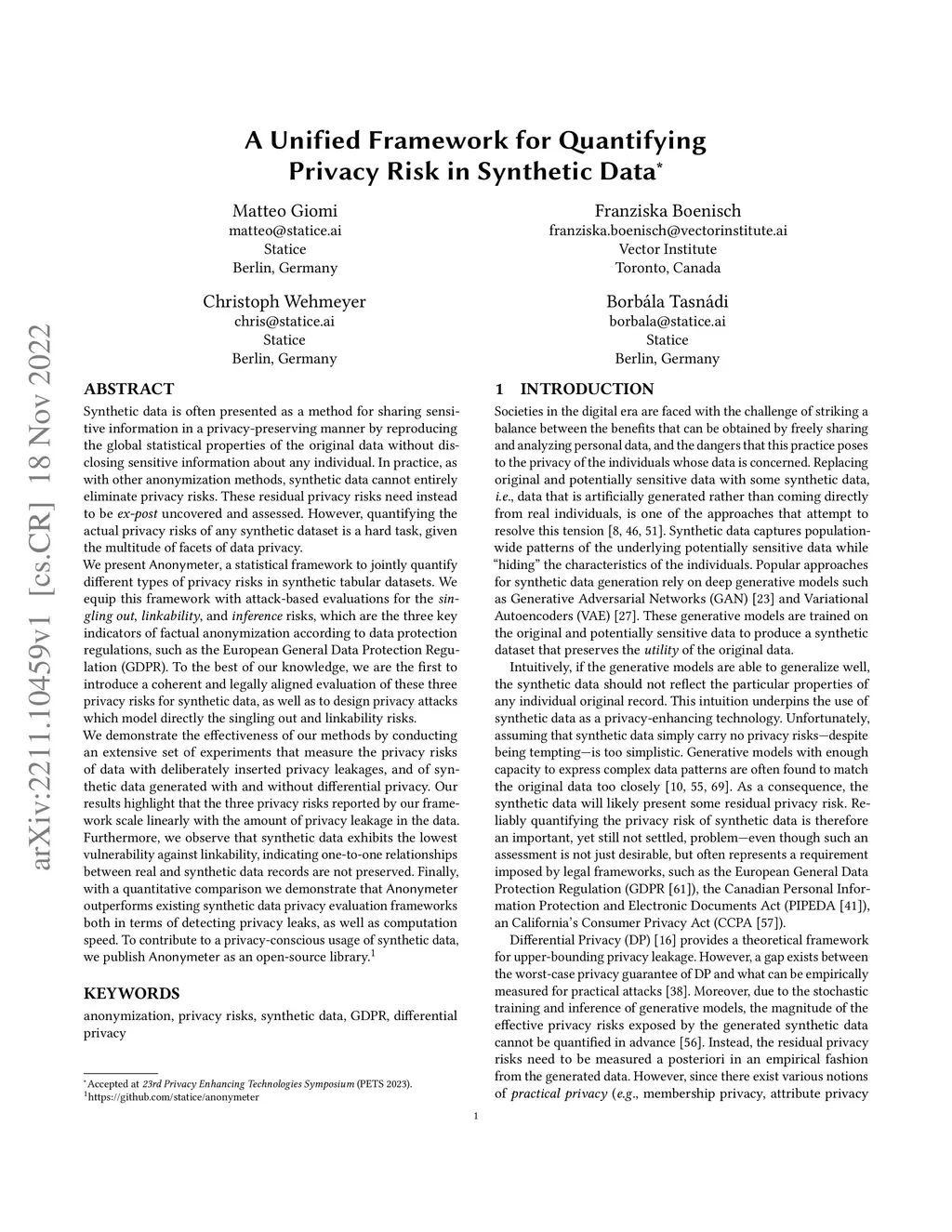 A Unified Framework for Quantifying Privacy Risk in Synthetic Data