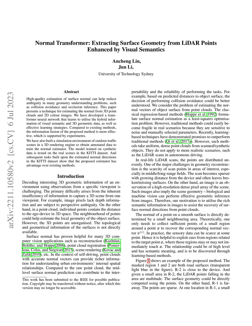 Normal Transformer: Extracting Surface Geometry from LiDAR Points Enhanced by Visual Semantics