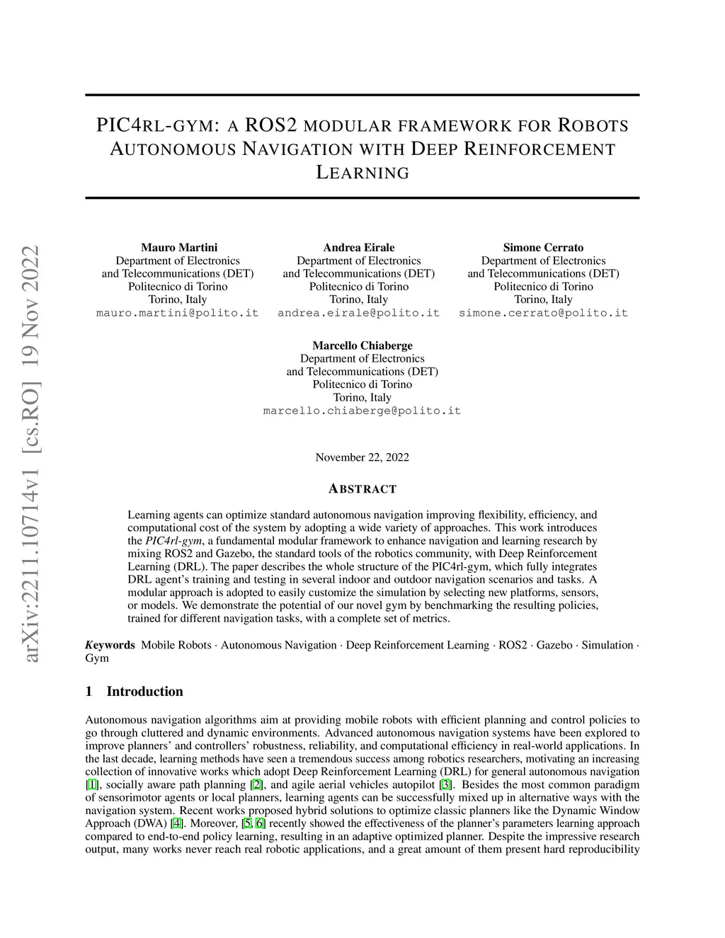 PIC4rl-gym: a ROS2 modular framework for Robots Autonomous Navigation