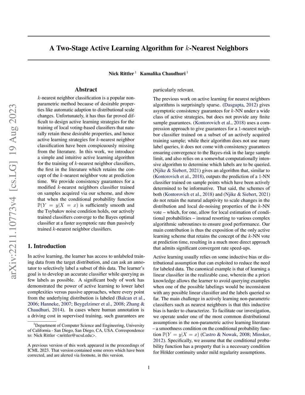 A Two-Stage Active Learning Algorithm for -Nearest Neighbors