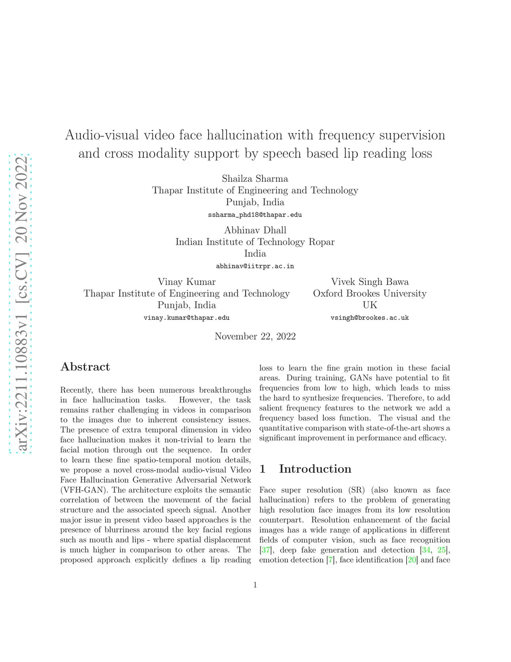 Audio-visual video face hallucination with frequency supervision and