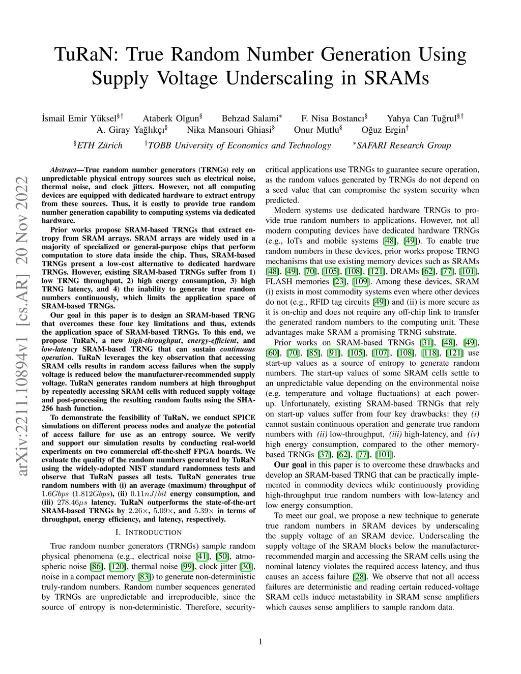 TuRaN: True Random Number Generation Using Supply Voltage Underscaling