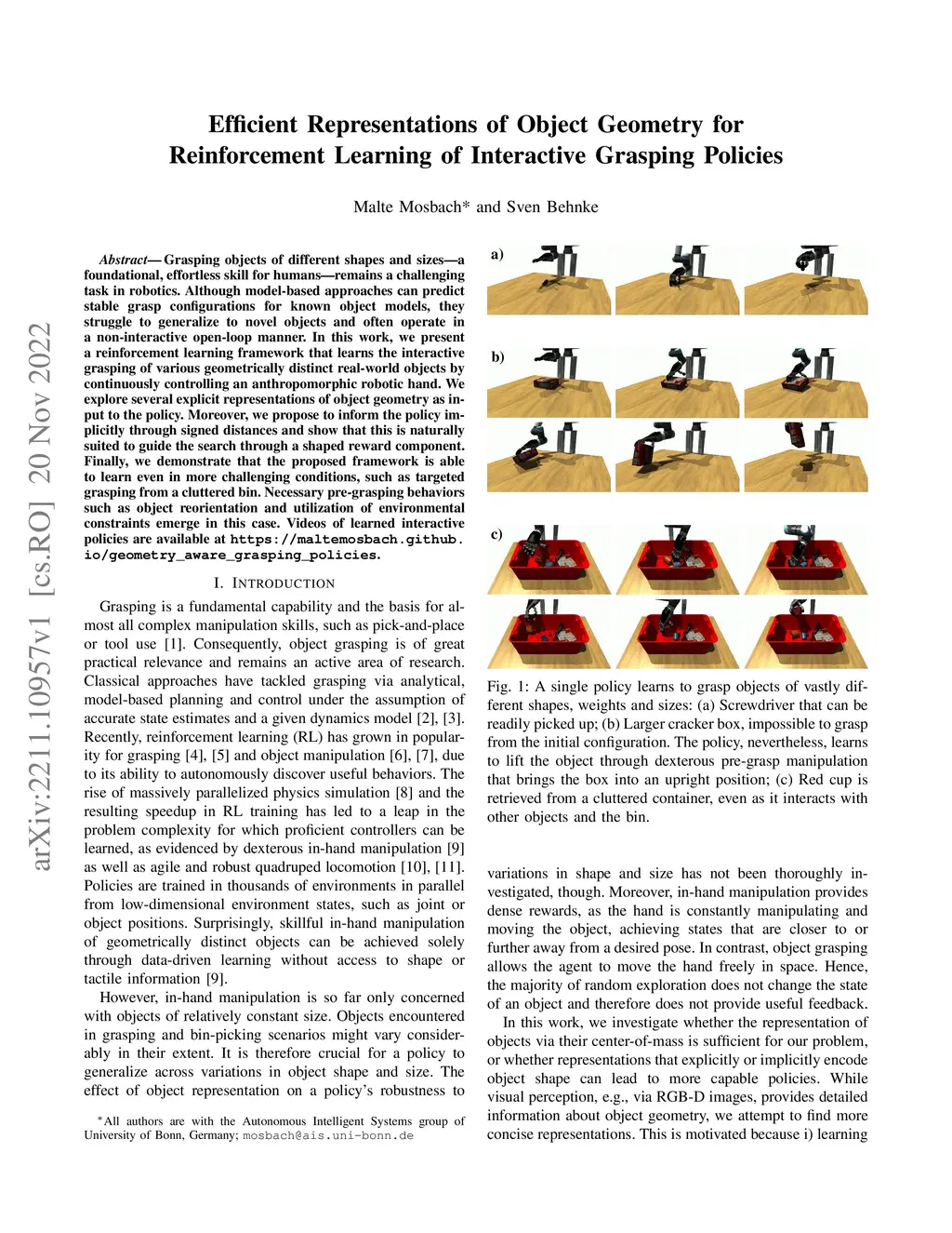 Efficient Representations of Object Geometry for Reinforcement Learning