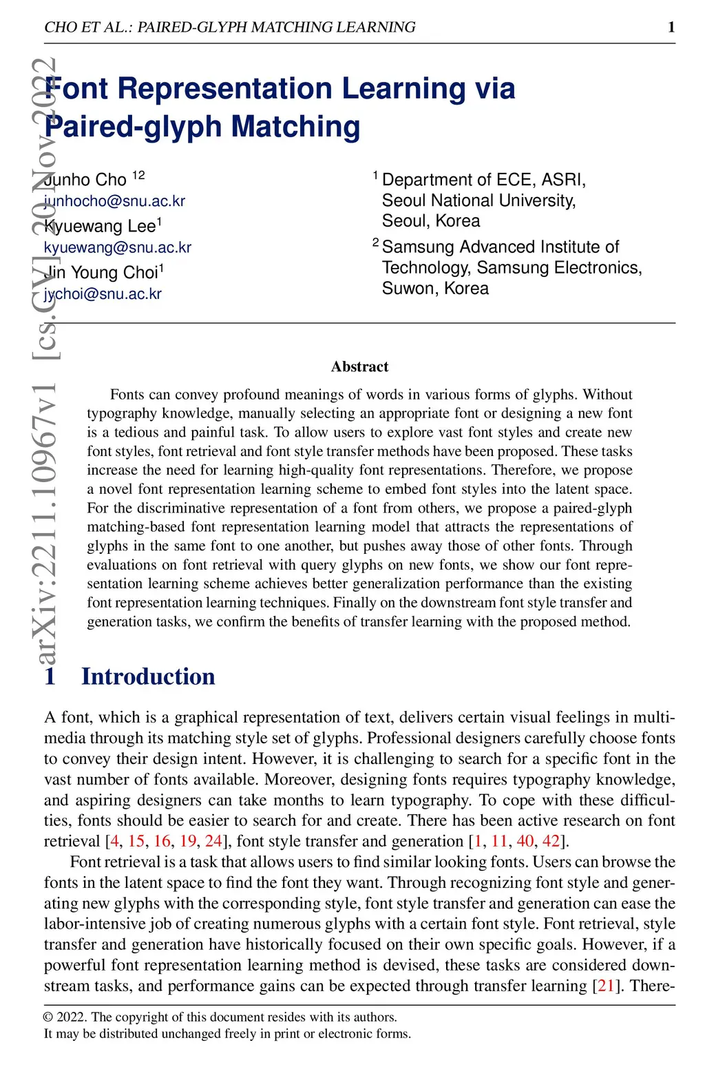 Font Representation Learning via Paired-glyph Matching