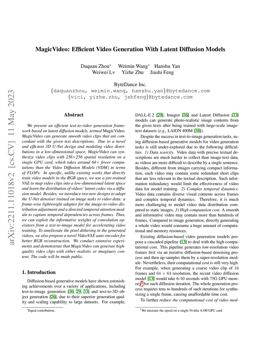MagicVideo: Efficient Video Generation With Latent Diffusion Models