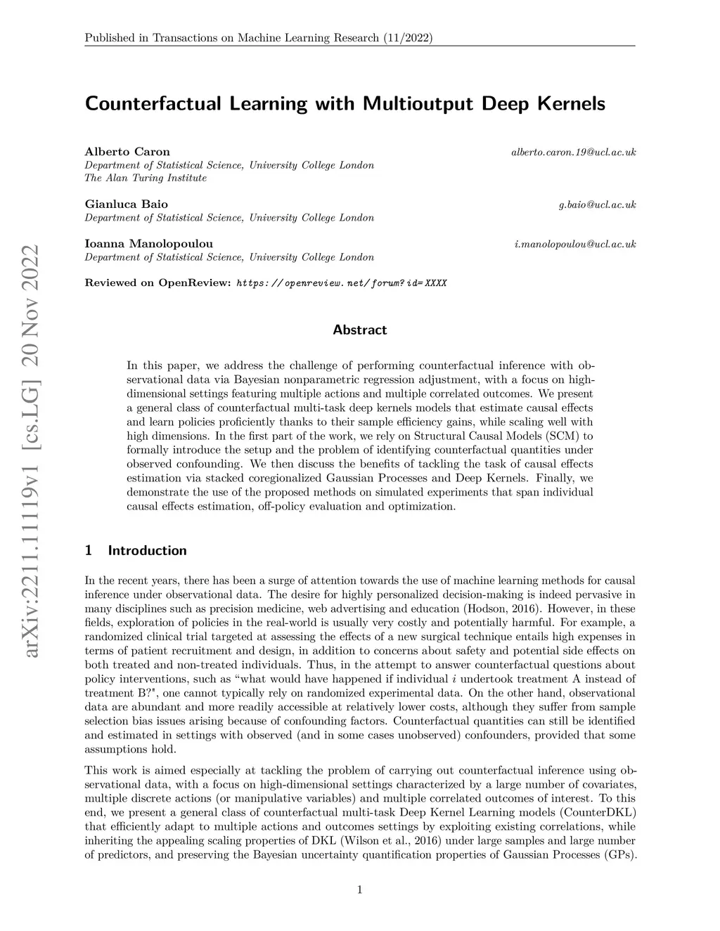 Counterfactual Learning with Multioutput Deep Kernels