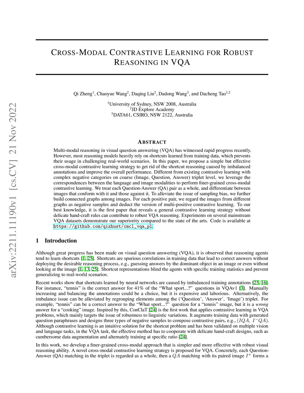 Cross-Modal Contrastive Learning for Robust Reasoning in VQA
