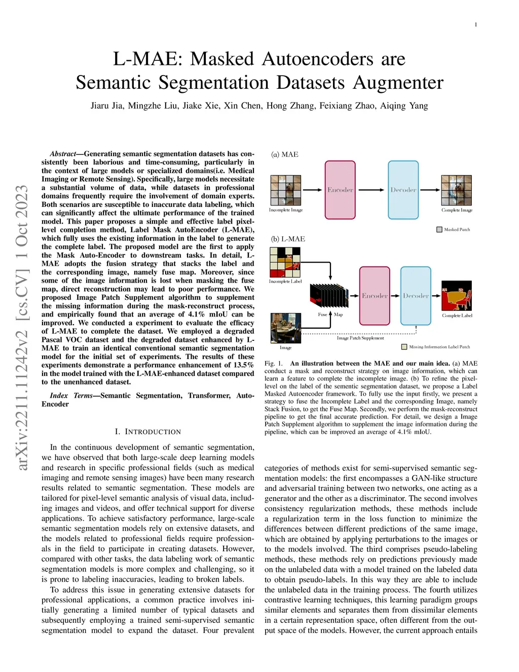 L-MAE: Masked Autoencoders are Semantic Segmentation Datasets Augmenter
