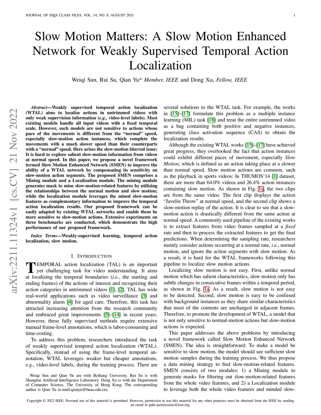 Slow Motion Matters: A Slow Motion Enhanced Network for Weakly