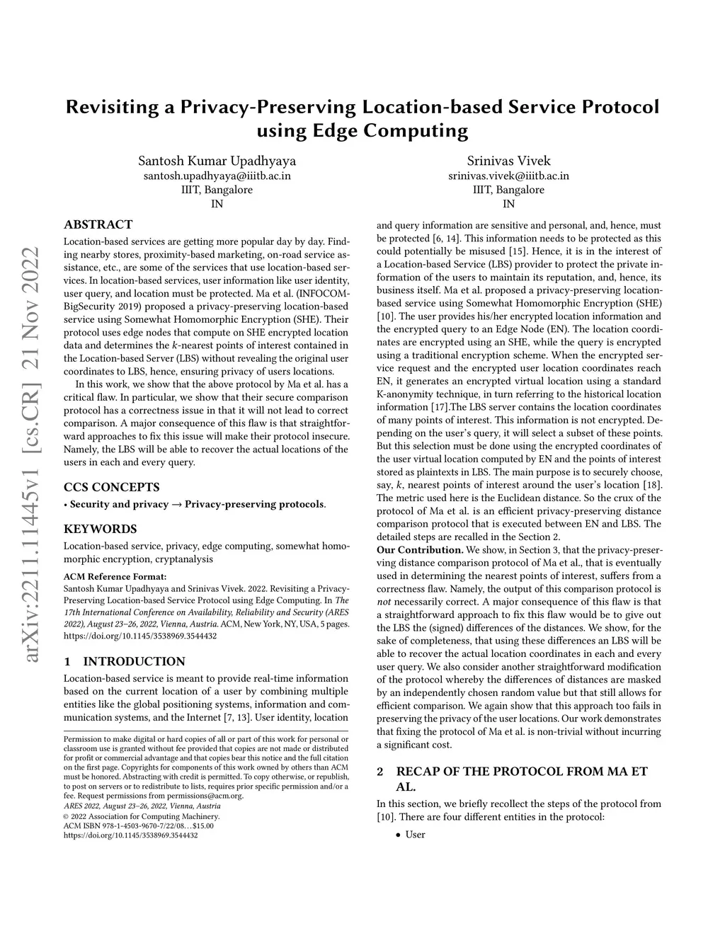 Revisiting a Privacy-Preserving Location-based Service Protocol using