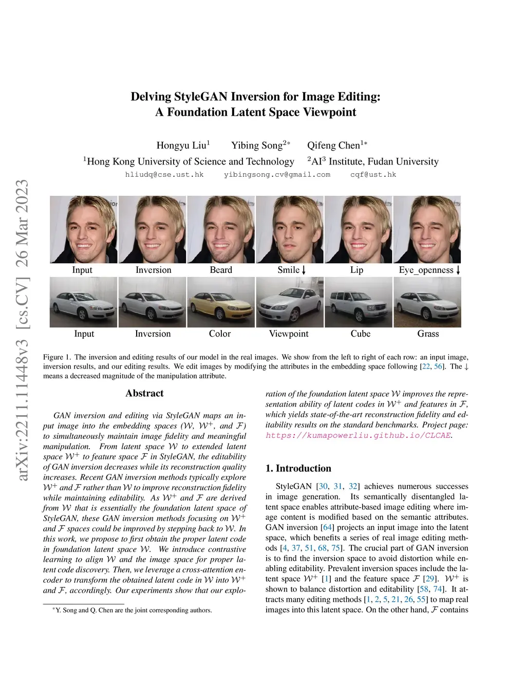 GAN inversion and editing via StyleGAN maps an input image into the embedding spaces (, , and ) to simultaneously maintain image fidelity and meaningful manipulation. From latent space to extended latent space to feature space in StyleGAN, the editability of GAN inversion decreases while its reconstruction quality increases. Recent GAN inversion methods typically explore and rather than to improve reconstruction fidelity while maintaining editability. As and are derived from that is essentially the foundation latent space of StyleGAN, these GAN inversion methods focusing on and spaces could be improved by stepping back to . In this work, we propose to first obtain the precise latent code in foundation latent space . We introduce contrastive learning to align and the image space for precise latent code discovery. %The obtaining process is by using contrastive learning to align and the image space. Then, we leverage a cross-attention encoder to transform the obtained latent code in into and , accordingly. Our experiments show that our exploration of the foundation latent space improves the representation ability of latent codes in and features in , which yields state-of-the-art reconstruction fidelity and editability results on the standard benchmarks. Project page: https://kumapowerliu.github.io/CLCAE.