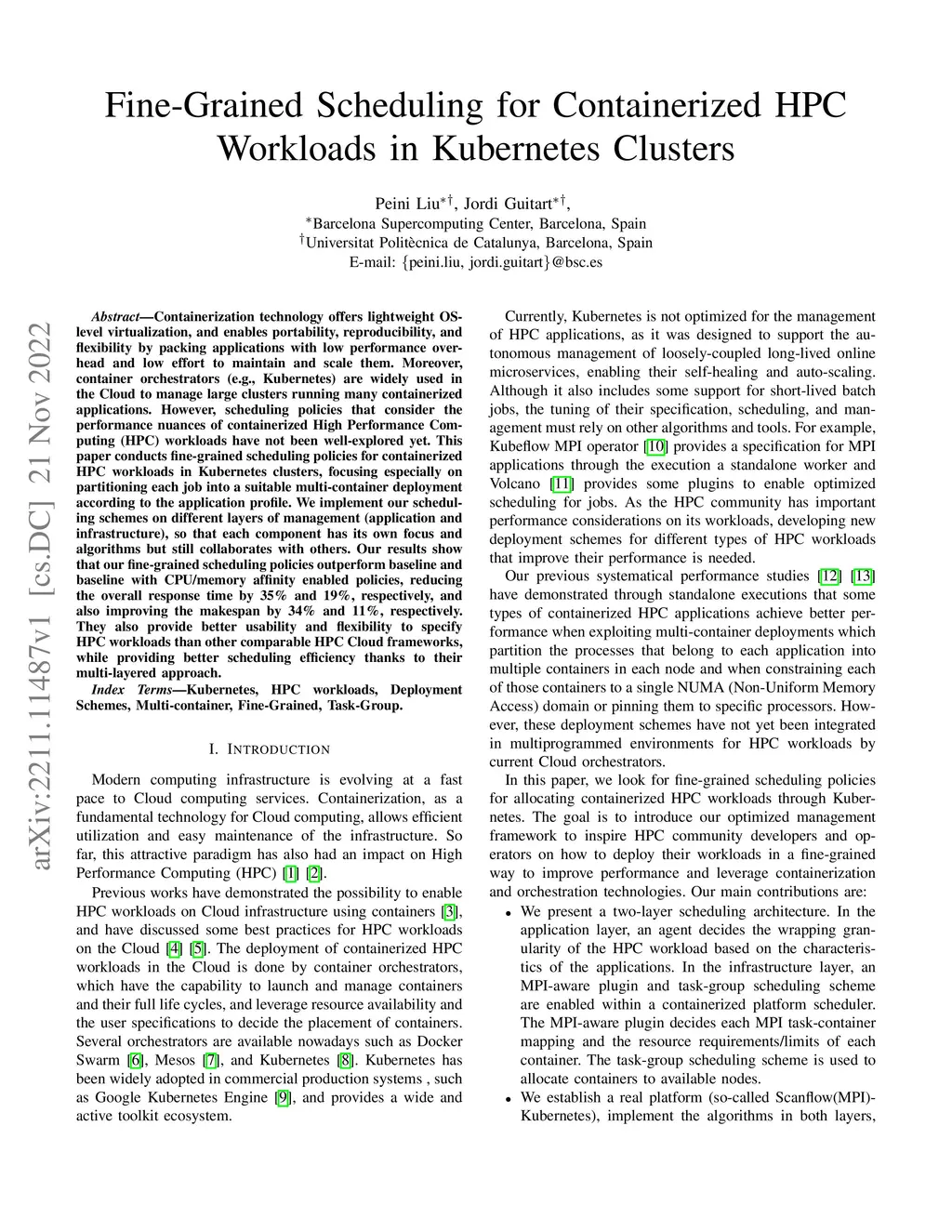 Fine-Grained Scheduling for Containerized HPC Workloads in Kubernetes