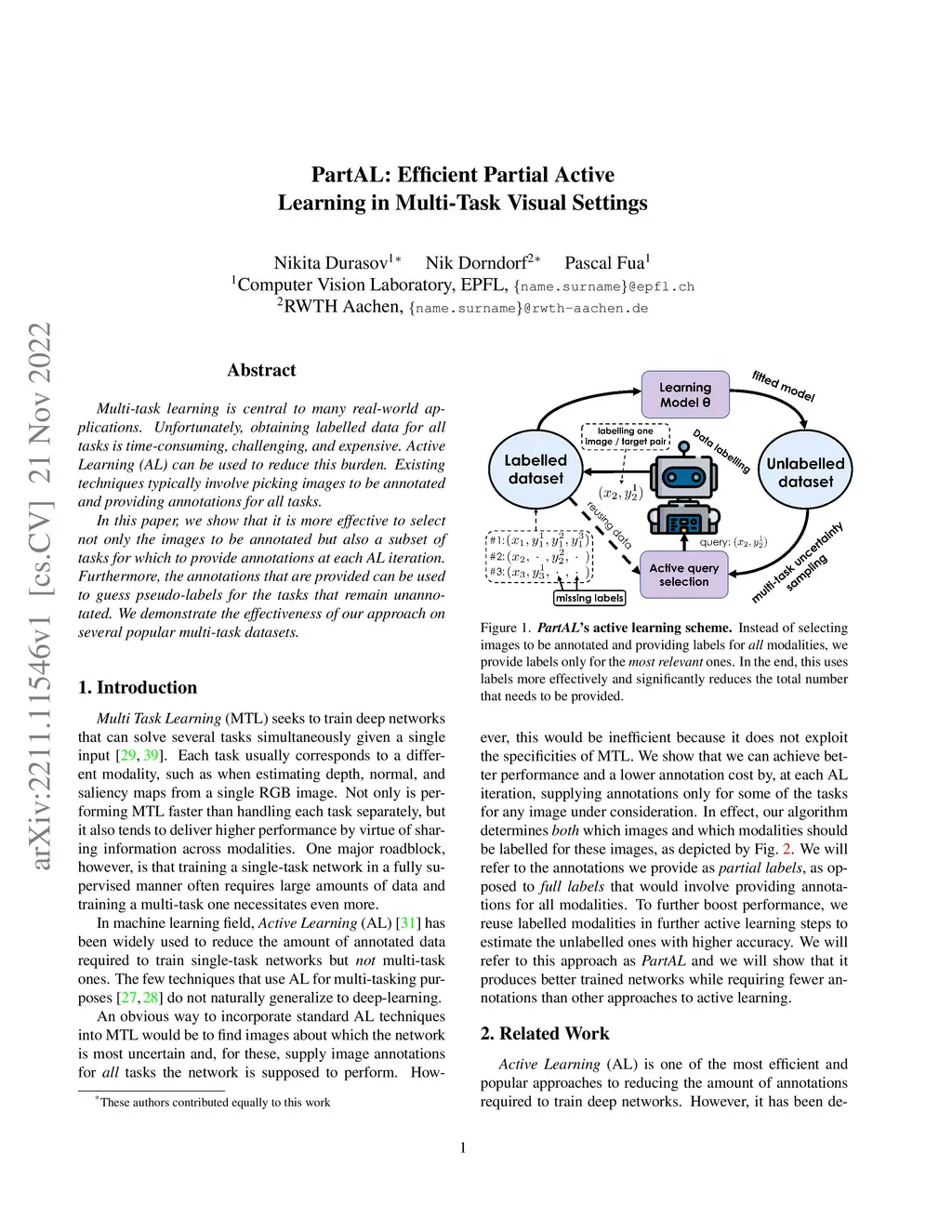 PartAL: Efficient Partial Active Learning in Multi-Task Visual Settings