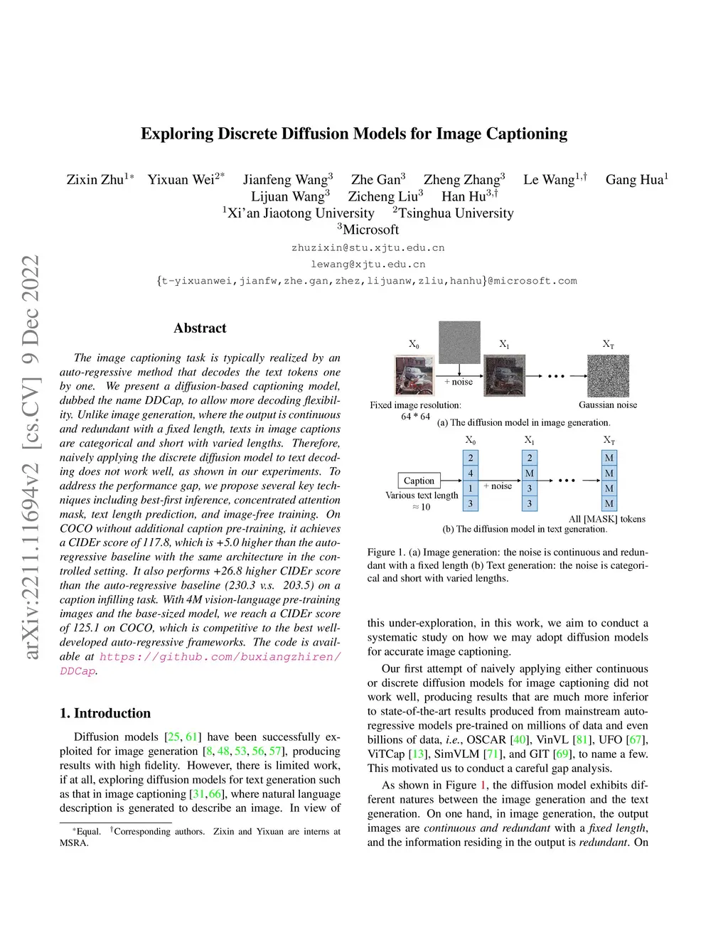 The image captioning task is typically realized by an auto-regressive method that decodes the text tokens one by one. We present a diffusion-based captioning model, dubbed the name DDCap, to allow more decoding flexibility. Unlike image generation, where the output is continuous and redundant with a fixed length, texts in image captions are categorical and short with varied lengths. Therefore, naively applying the discrete diffusion model to text decoding does not work well, as shown in our experiments. To address the performance gap, we propose several key techniques including best-first inference, concentrated attention mask, text length prediction, and image-free training. On COCO without additional caption pre-training, it achieves a CIDEr score of 117.8, which is +5.0 higher than the auto-regressive baseline with the same architecture in the controlled setting. It also performs +26.8 higher CIDEr score than the auto-regressive baseline (230.3 v.s.203.5) on a caption infilling task. With 4M vision-language pre-training images and the base-sized model, we reach a CIDEr score of 125.1 on COCO, which is competitive to the best well-developed auto-regressive frameworks. The code is available at https://github.com/buxiangzhiren/DDCap.