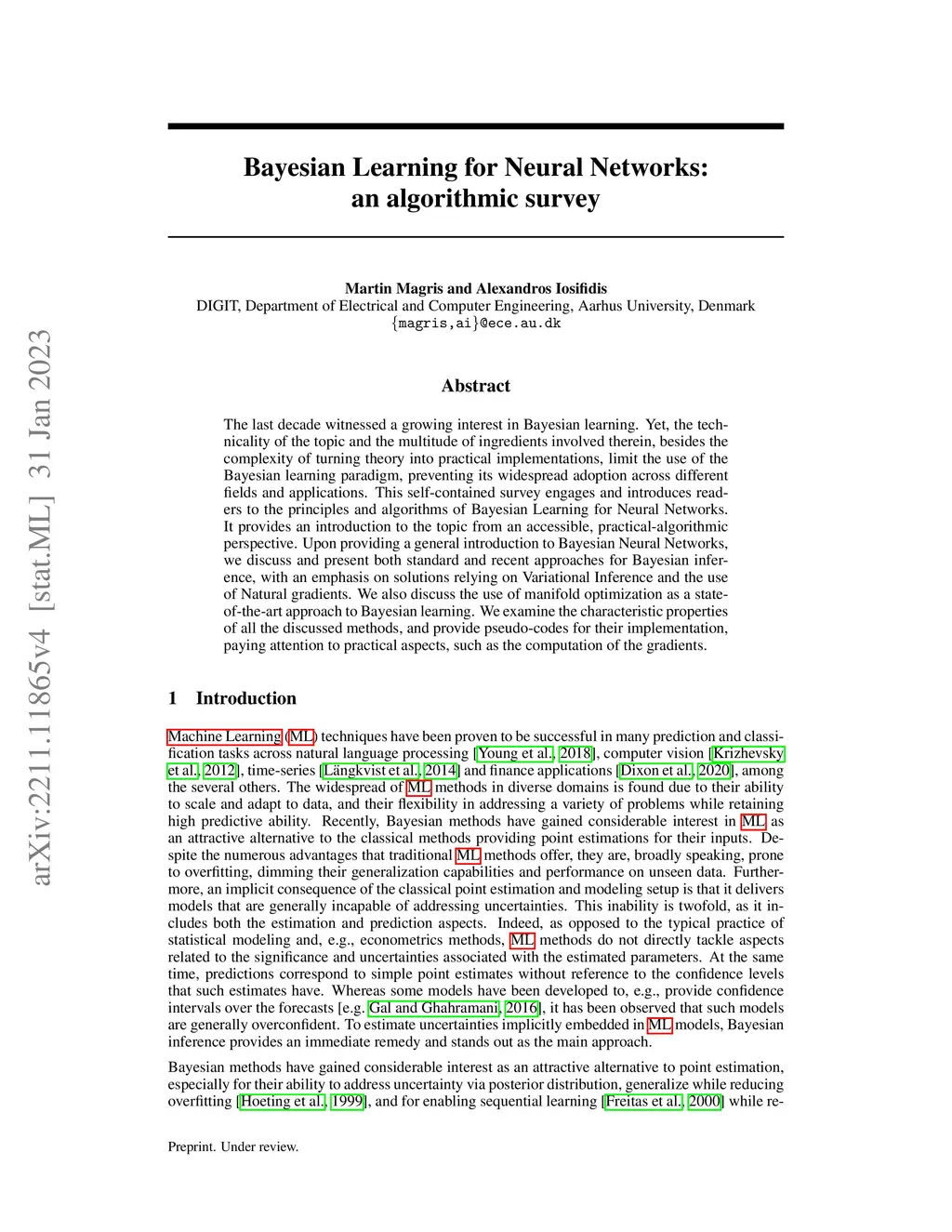 Bayesian Learning for Neural Networks: an algorithmic survey