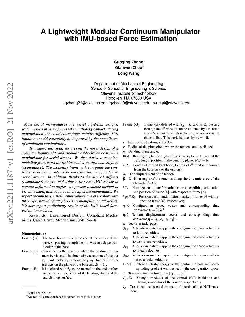 A Lightweight Modular Continuum Manipulator with IMU-based Force