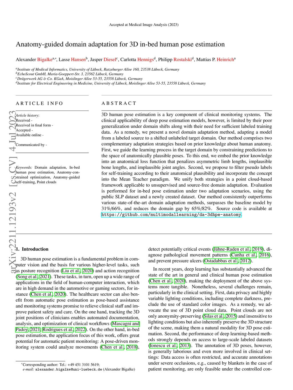 Anatomy-guided domain adaptation for 3D in-bed human pose estimation