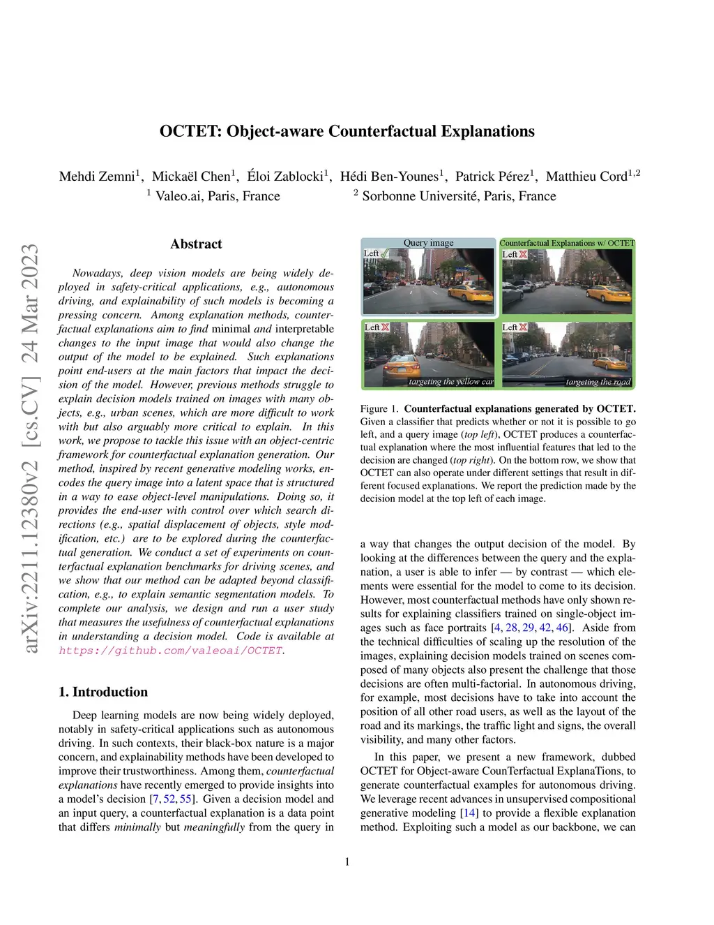 Nowadays, deep vision models are being widely deployed in safety-critical applications, e.g., autonomous driving, and explainability of such models is becoming a pressing concern. Among explanation methods, counterfactual explanations aim to find minimal and interpretable changes to the input image that would also change the output of the model to be explained. Such explanations point end-users at the main factors that impact the decision of the model. However, previous methods struggle to explain decision models trained on images with many objects, e.g., urban scenes, which are more difficult to work with but also arguably more critical to explain. In this work, we propose to tackle this issue with an object-centric framework for counterfactual explanation generation. Our method, inspired by recent generative modeling works, encodes the query image into a latent space that is structured in a way to ease object-level manipulations. Doing so, it provides the end-user with control over which search directions (e.g., spatial displacement of objects, style modification, etc.) are to be explored during the counterfactual generation. We conduct a set of experiments on counterfactual explanation benchmarks for driving scenes, and we show that our method can be adapted beyond classification, e.g., to explain semantic segmentation models. To complete our analysis, we design and run a user study that measures the usefulness of counterfactual explanations in understanding a decision model. Code is available at https://github.com/valeoai/OCTET.