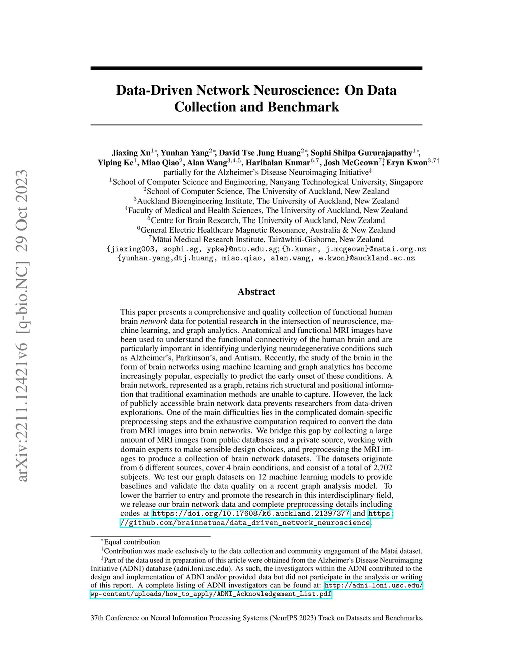 Data-Driven Network Neuroscience: On Data Collection and Benchmark