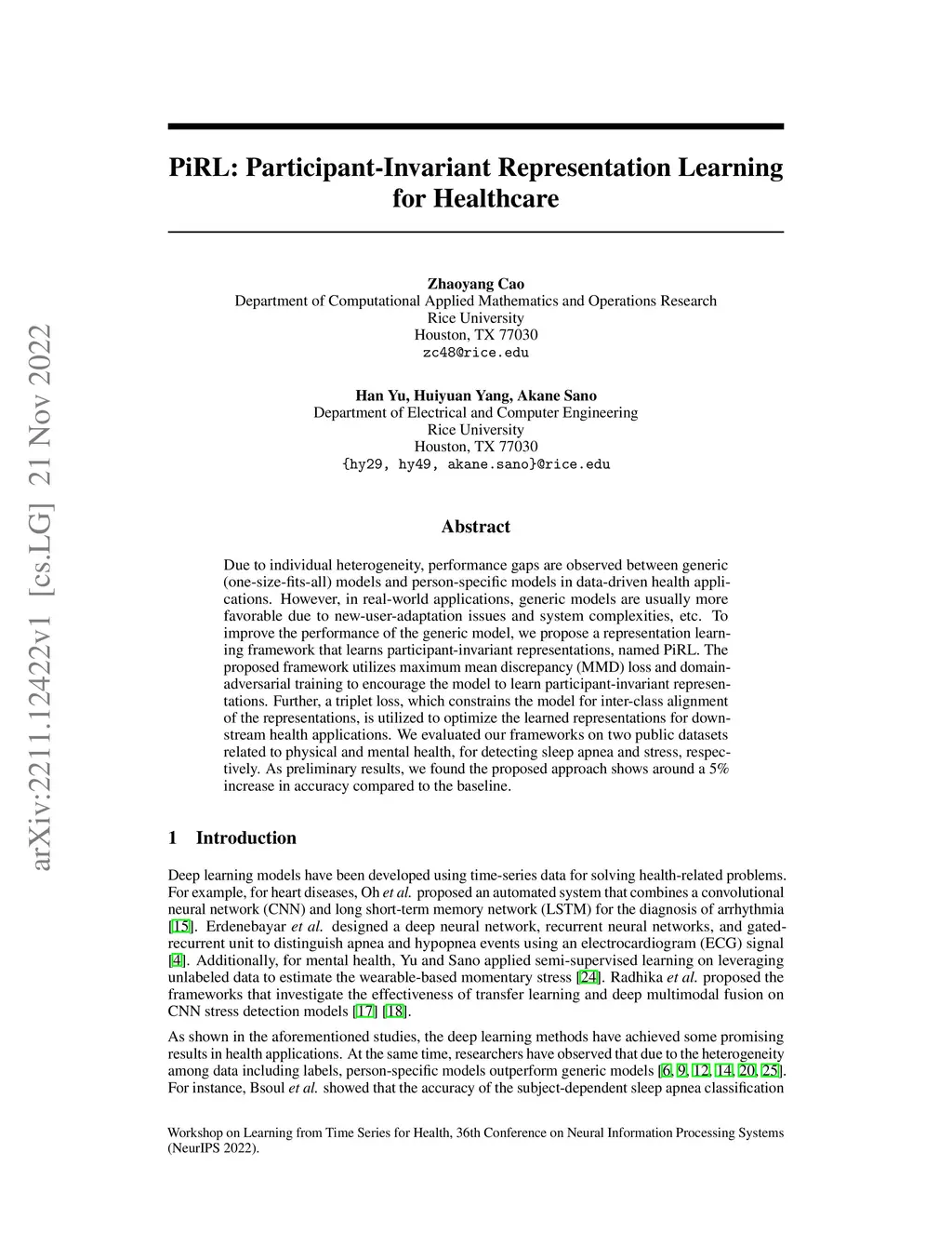 PiRL: Participant-Invariant Representation Learning for Healthcare