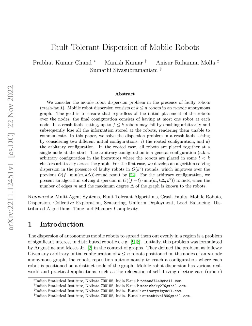 We consider the mobile robot dispersion problem in the presence of faulty robots (crash-fault). Mobile robot dispersion consists of robots in an -node anonymous graph. The goal is to ensure that regardless of the initial placement of the robots over the nodes, the final configuration consists of having at most one robot at each node. In a crash-fault setting, up to robots may fail by crashing arbitrarily and subsequently lose all the information stored at the robots, rendering them unable to communicate. In this paper, we solve the dispersion problem in a crash-fault setting by considering two different initial configurations: i) the rooted configuration, and ii) the arbitrary configuration. In the rooted case, all robots are placed together at a single node at the start. The arbitrary configuration is a general configuration (a.k.a. arbitrary configuration in the literature) where the robots are placed in some clusters arbitrarily across the graph. For the first case, we develop an algorithm solving dispersion in the presence of faulty robots in rounds, which improves over the previous -round result by \cite{PS021}. For the arbitrary configuration, we present an algorithm solving dispersion in rounds, when the number of edges and the maximum degree of the graph is known to the robots.