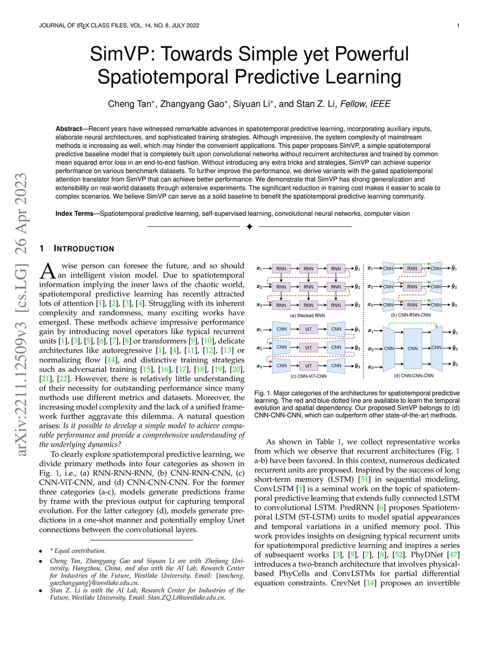 SimVP: Towards Simple yet Powerful Spatiotemporal Predictive Learning
