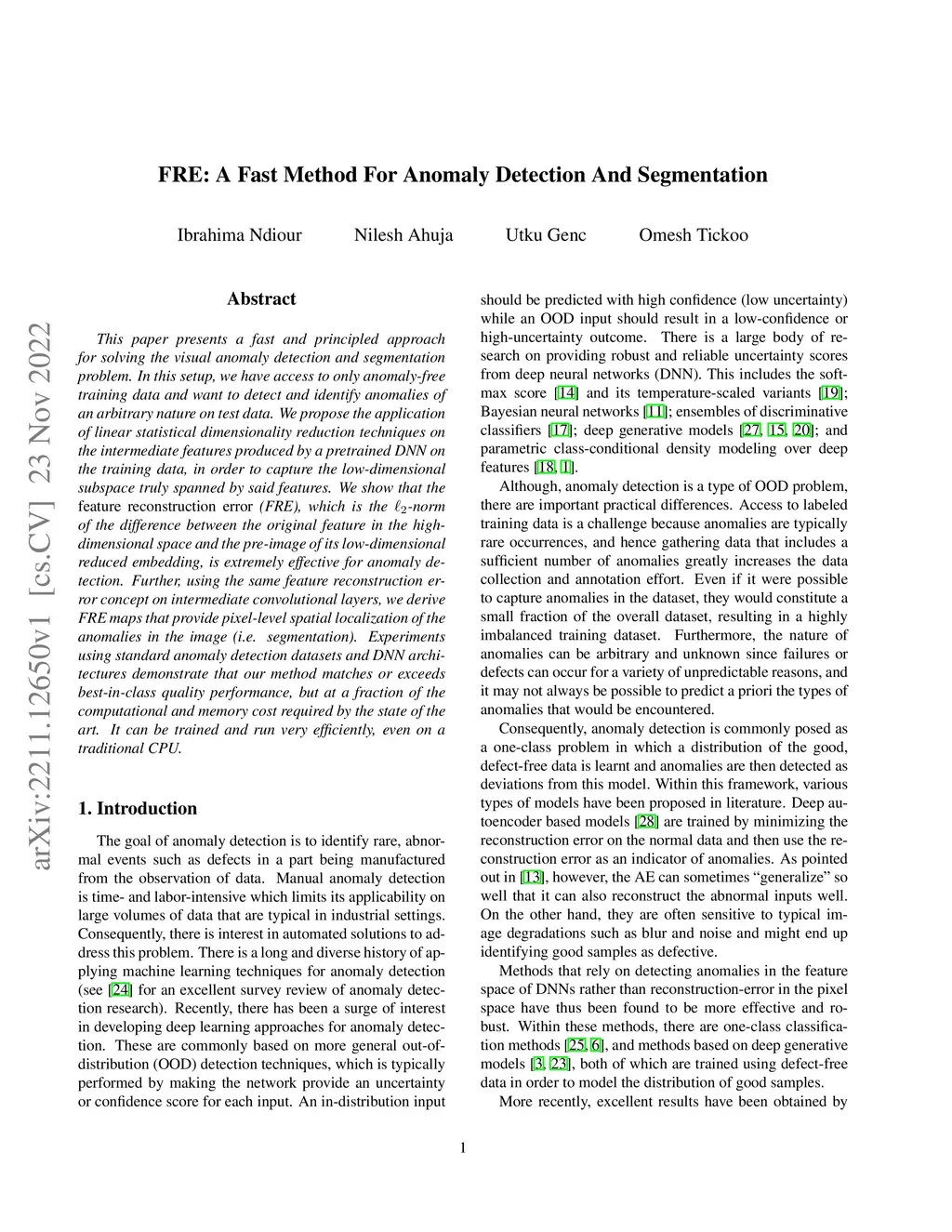 FRE: A Fast Method For Anomaly Detection And Segmentation