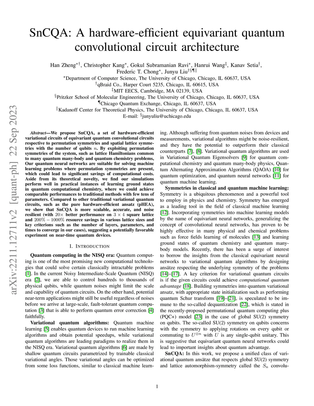 SnCQA: A hardware-efficient equivariant quantum convolutional circuit