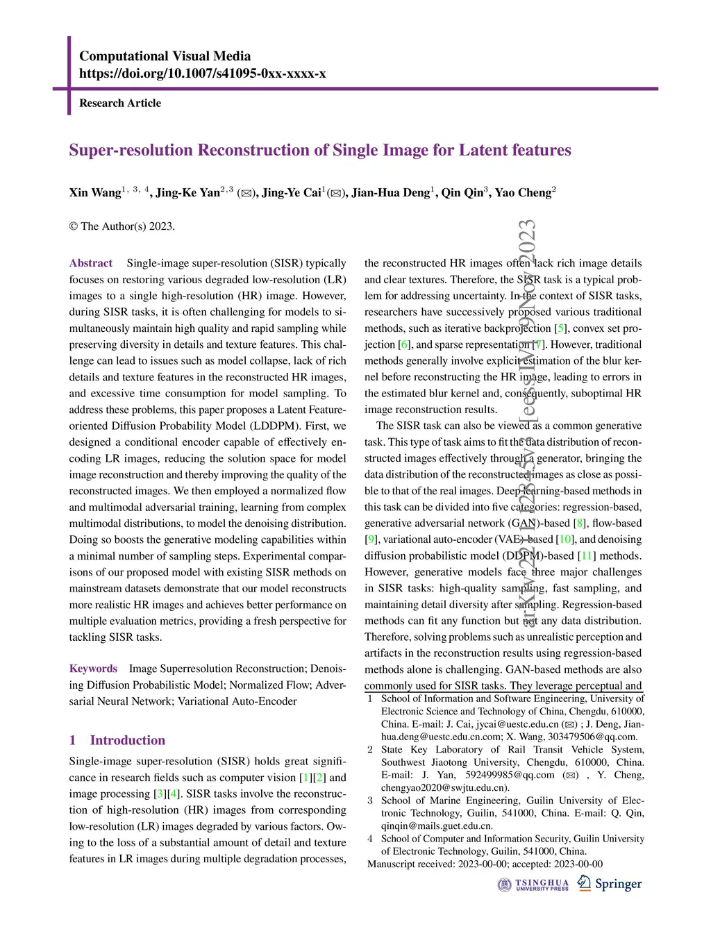 Super-resolution Reconstruction of Single Image for Latent features