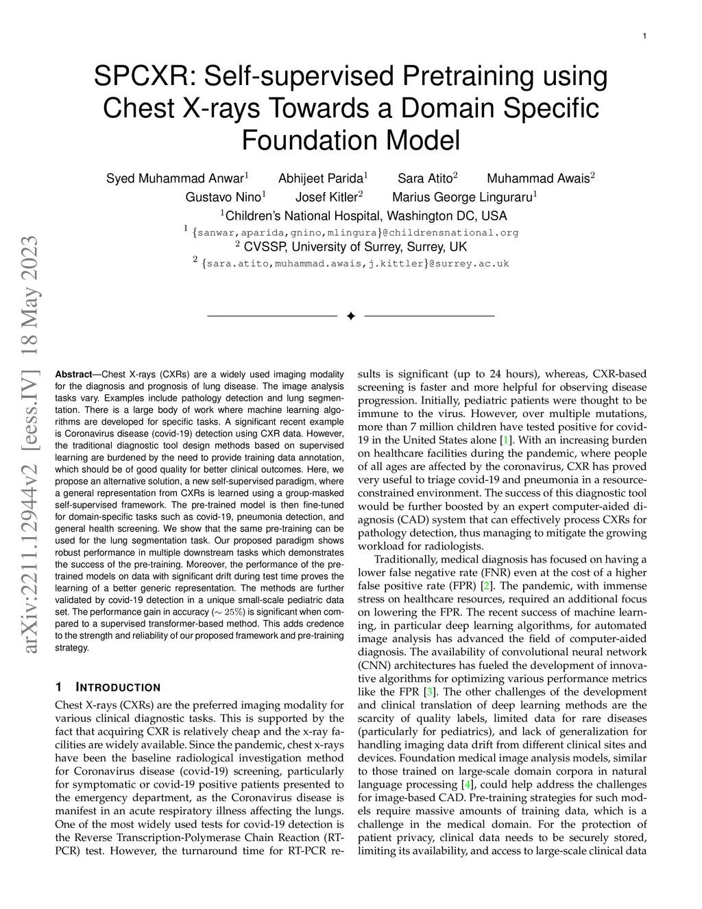SPCXR: Self-supervised Pretraining using Chest X-rays Towards a Domain
