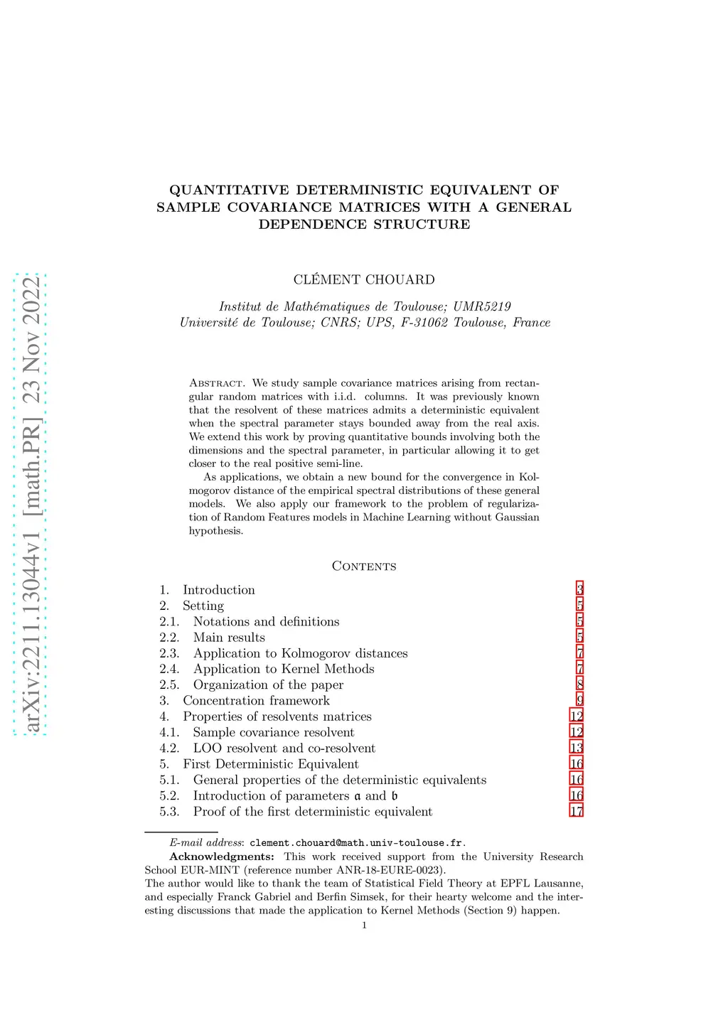We study sample covariance matrices arising from rectangular random matrices with i.i.d. columns. It was previously known that the resolvent of these matrices admits a deterministic equivalent when the spectral parameter stays bounded away from the real axis. We extend this work by proving quantitative bounds involving both the dimensions and the spectral parameter, in particular allowing it to get closer to the real positive semi-line. As applications, we obtain a new bound for the convergence in Kolmogorov distance of the empirical spectral distributions of these general models. We also apply our framework to the problem of regularization of Random Features models in Machine Learning without Gaussian hypothesis.
