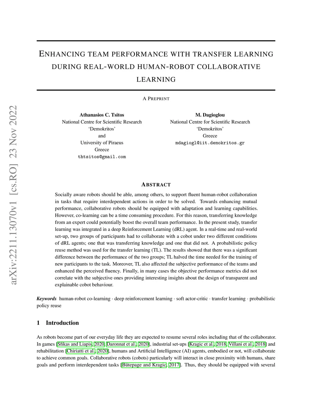 Enhancing team performance with transfer-learning during real-world
