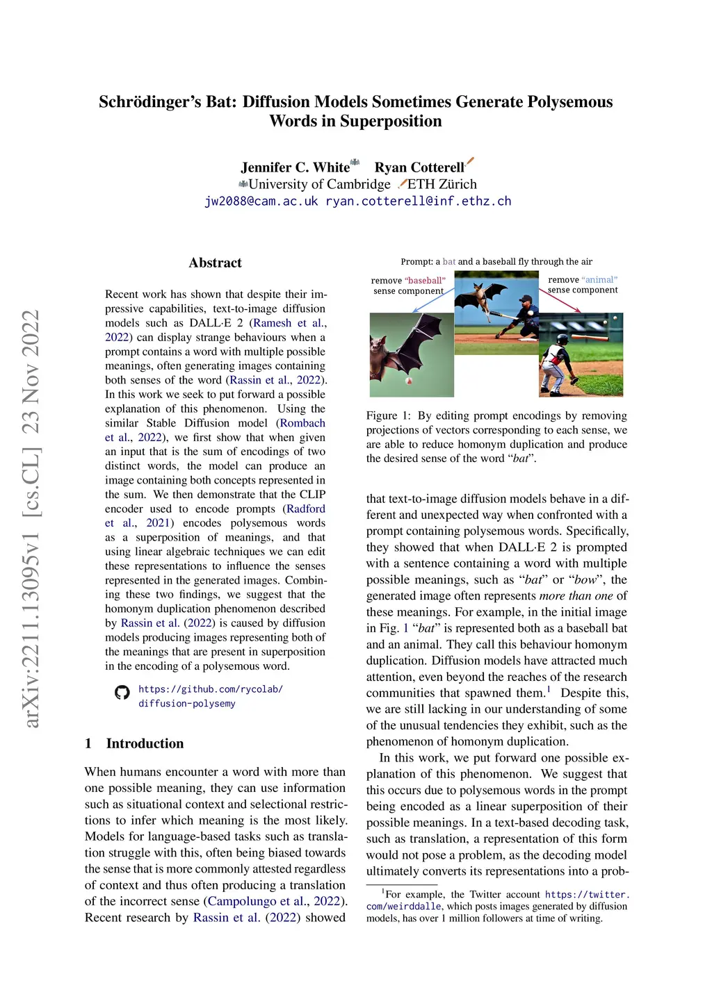 Schrödinger's Bat: Diffusion Models Sometimes Generate Polysemous