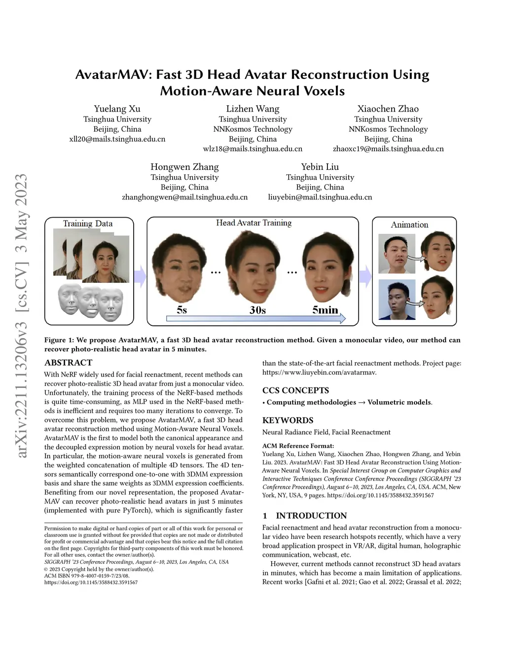 AvatarMAV: Fast 3D Head Avatar Reconstruction Using Motion-Aware Neural