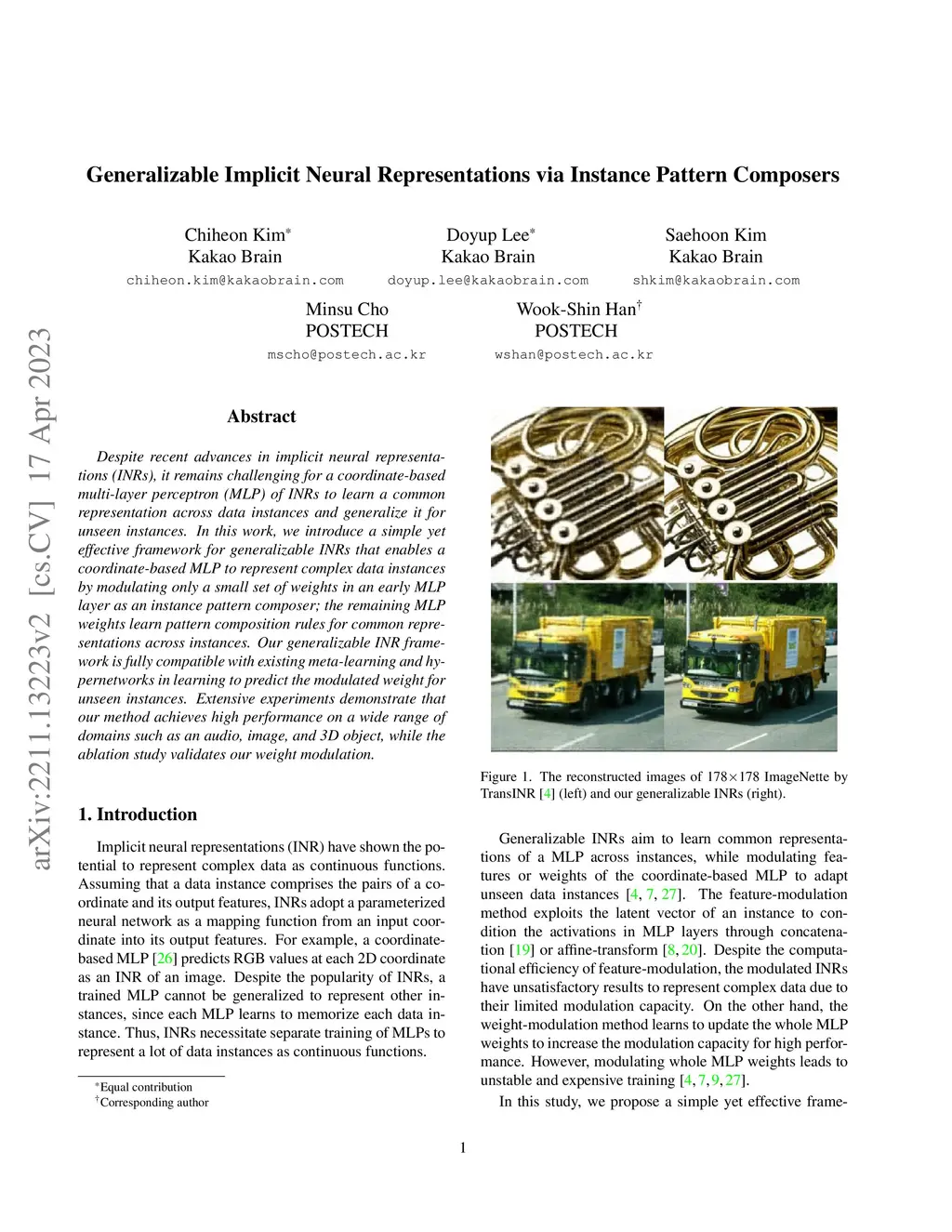 Generalizable Implicit Neural Representations via Instance Pattern Composers