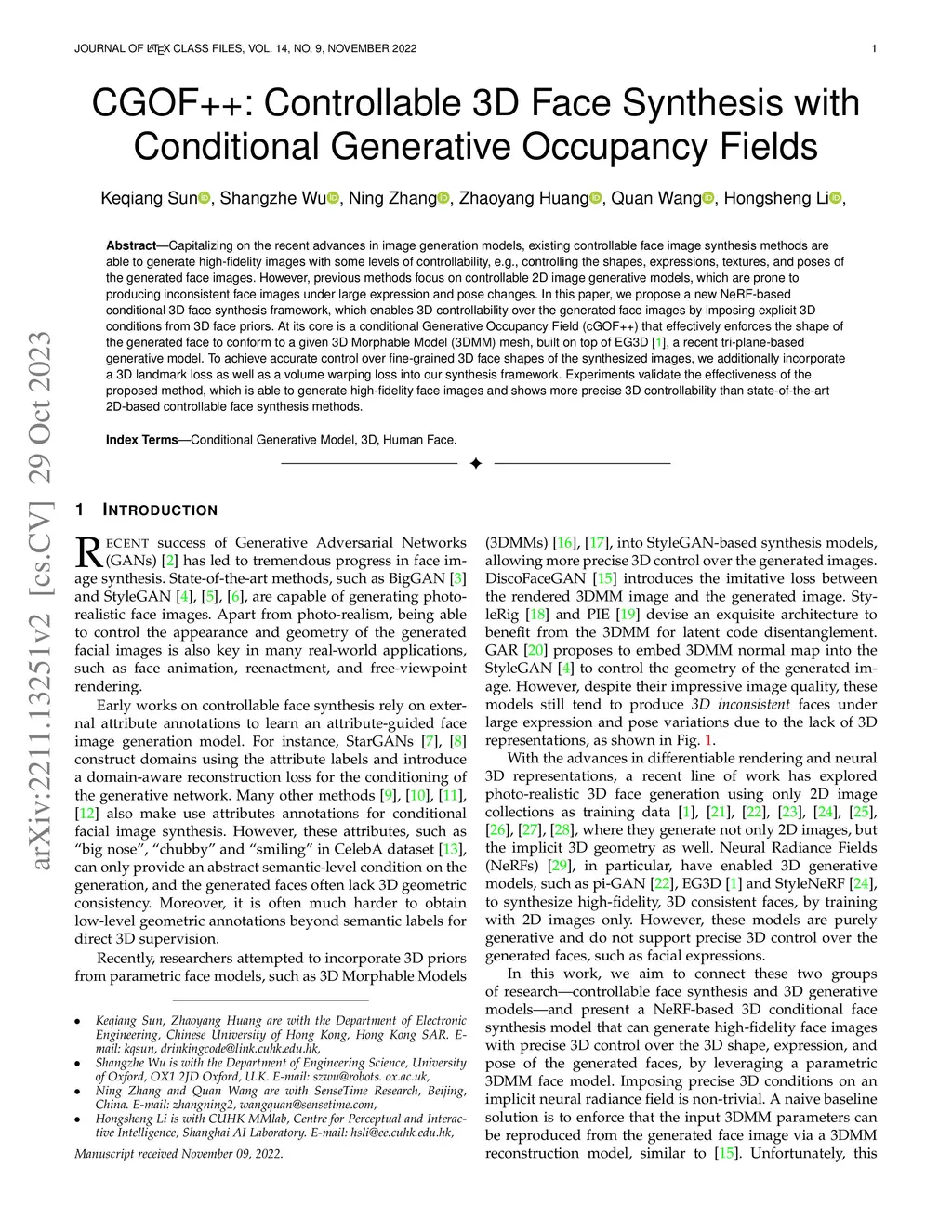 CGOF++: Controllable 3D Face Synthesis with Conditional Generative
