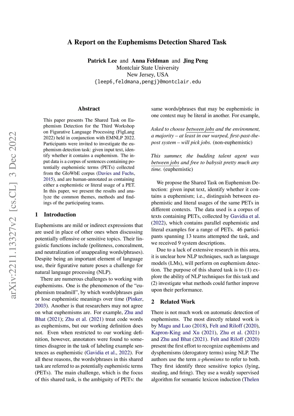 A Report on the Euphemisms Detection Shared Task
