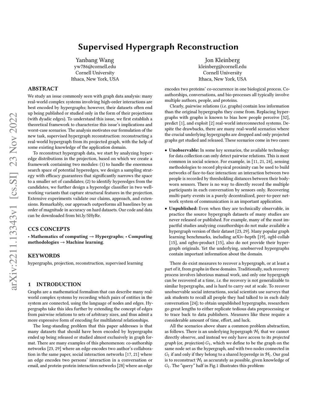 We study an issue commonly seen with graph data analysis: many real-world complex systems involving high-order interactions are best encoded by hypergraphs; however, their datasets often end up being published or studied only in the form of their projections (with dyadic edges). To understand this issue, we first establish a theoretical framework to characterize this issue's implications and worst-case scenarios. The analysis motivates our formulation of the new task, supervised hypergraph reconstruction: reconstructing a real-world hypergraph from its projected graph, with the help of some existing knowledge of the application domain. To reconstruct hypergraph data, we start by analyzing hyperedge distributions in the projection, based on which we create a framework containing two modules: (1) to handle the enormous search space of potential hyperedges, we design a sampling strategy with efficacy guarantees that significantly narrows the space to a smaller set of candidates; (2) to identify hyperedges from the candidates, we further design a hyperedge classifier in two well-working variants that capture structural features in the projection. Extensive experiments validate our claims, approach, and extensions. Remarkably, our approach outperforms all baselines by an order of magnitude in accuracy on hard datasets. Our code and data can be downloaded from bit.ly/SHyRe.