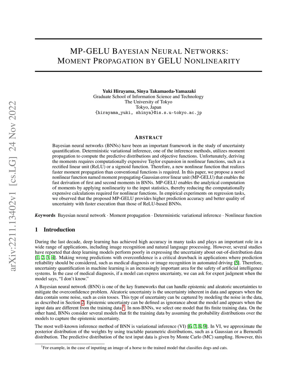 MP-GELU Bayesian Neural Networks: Moment Propagation by GELU