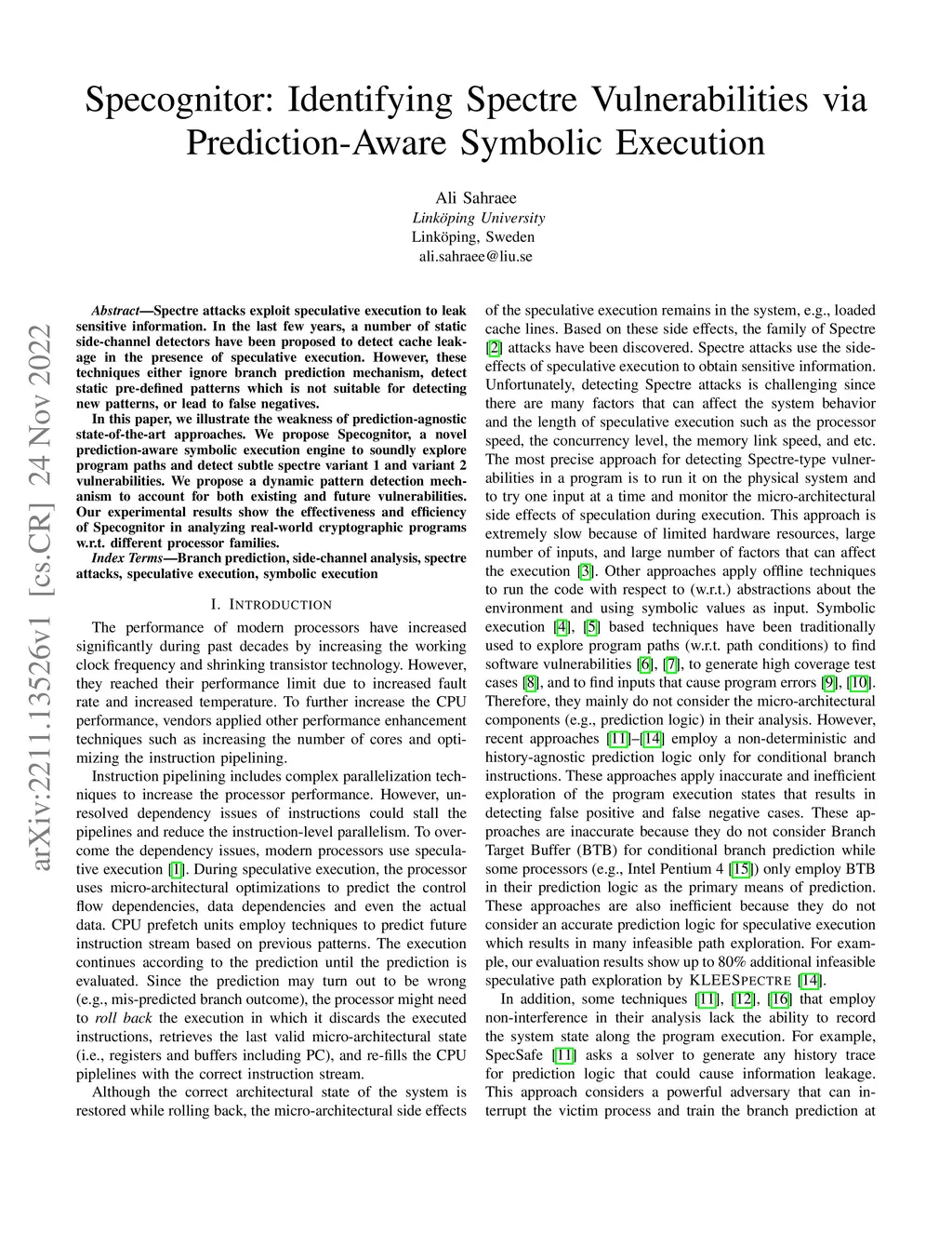 Specognitor: Identifying Spectre Vulnerabilities via Prediction-Aware