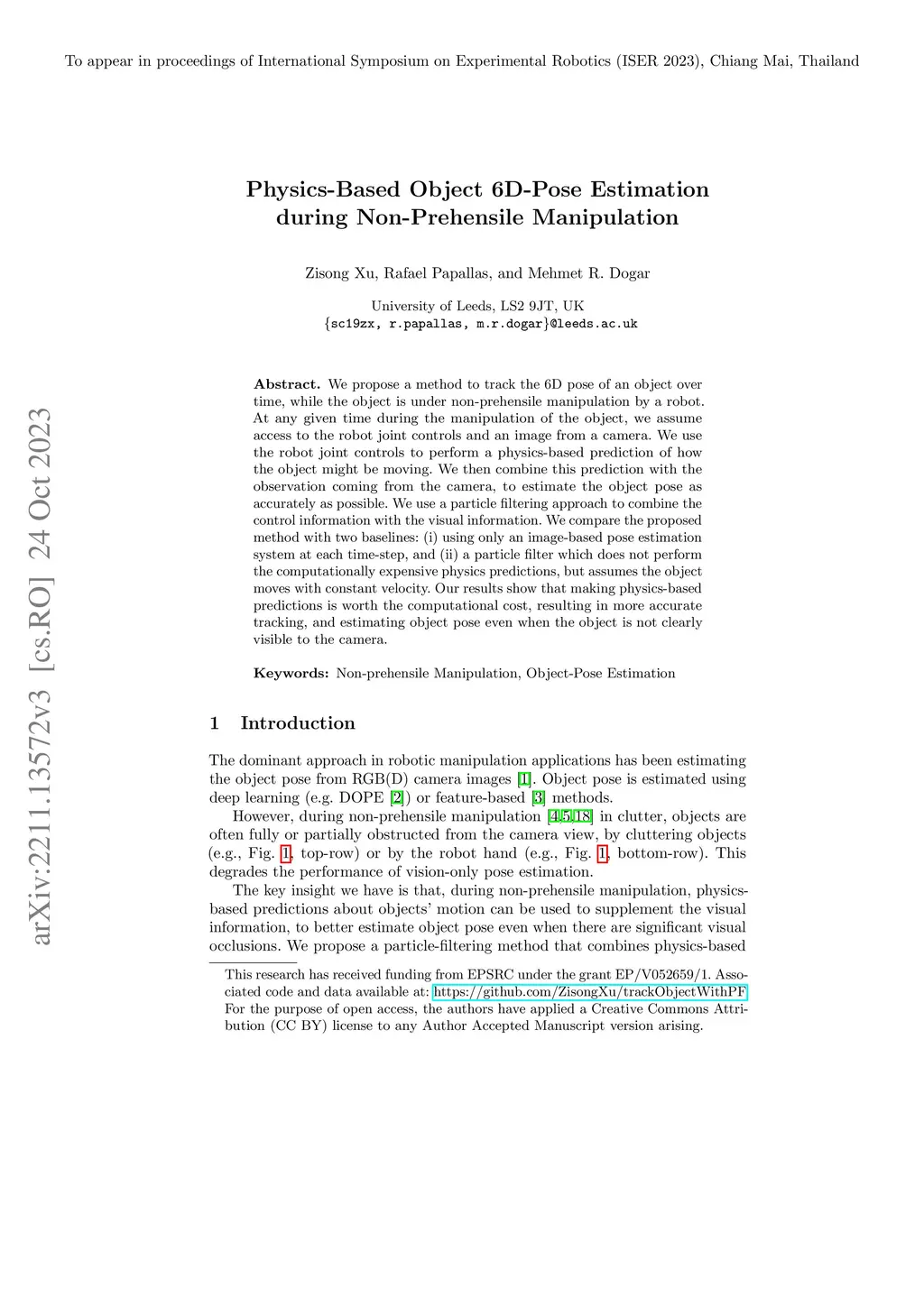 Physics-Based Object 6D-Pose Estimation during Non-Prehensile