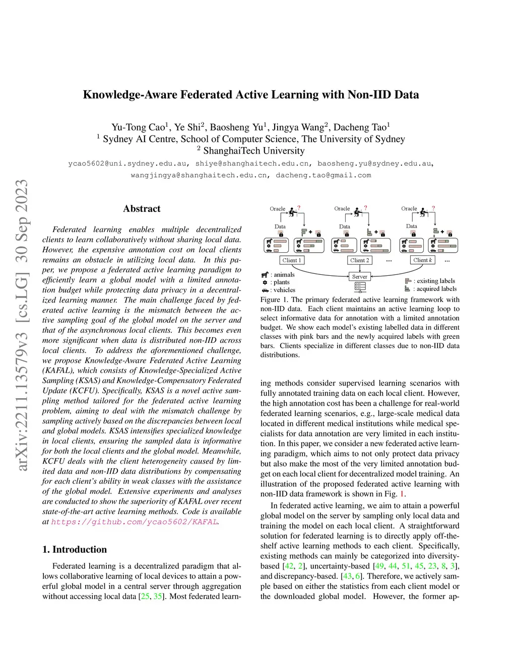 Knowledge-Aware Federated Active Learning with Non-IID Data