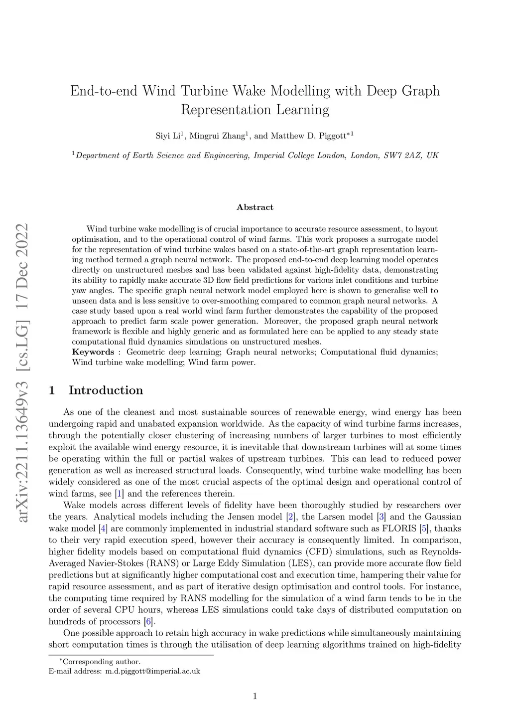 End-to-end Wind Turbine Wake Modelling with Deep Graph Representation