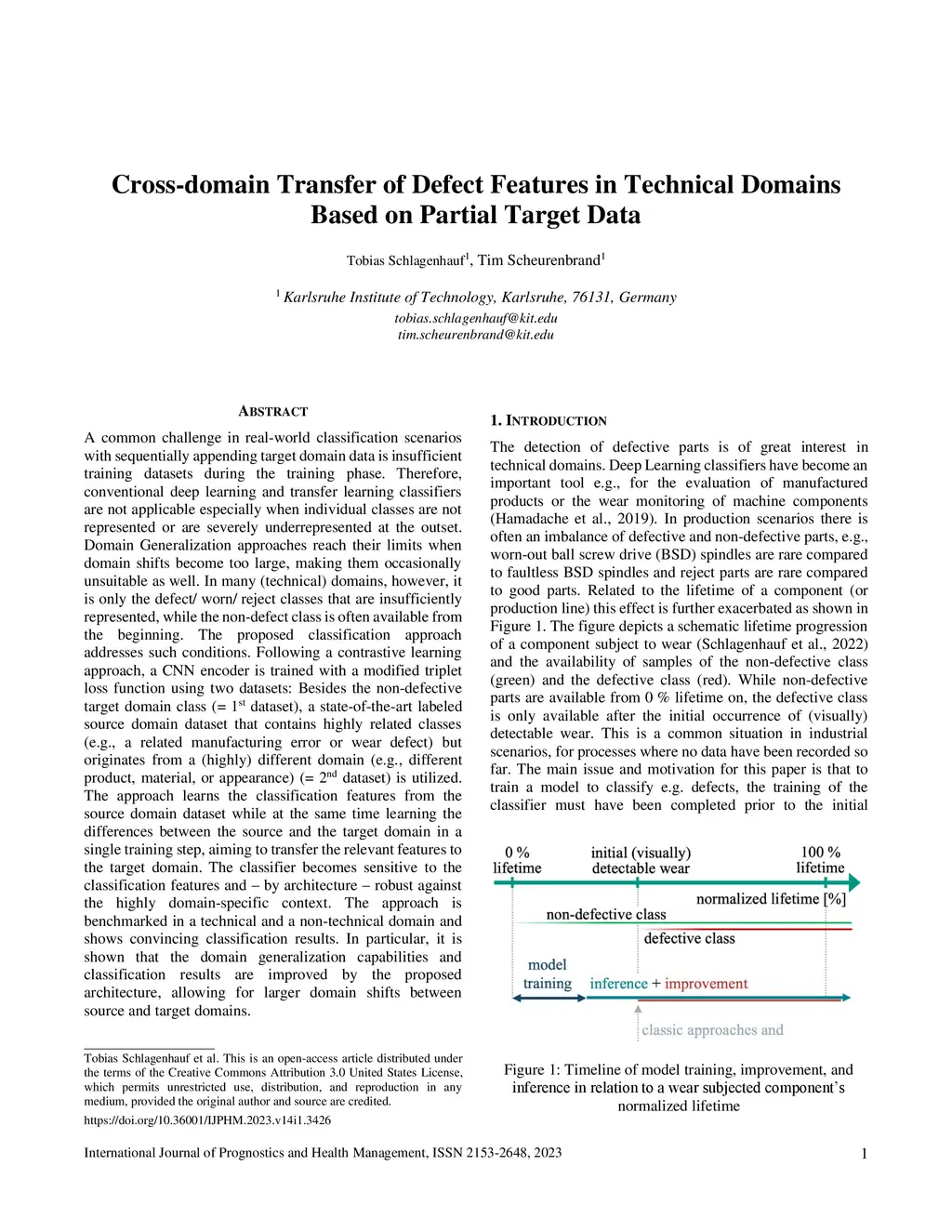 A common challenge in real world classification scenarios with sequentially appending target domain data is insufficient training datasets during the training phase. Therefore, conventional deep learning and transfer learning classifiers are not applicable especially when individual classes are not represented or are severely underrepresented at the outset. In many technical domains, however, it is only the defect or worn reject classes that are insufficiently represented, while the non-defect class is often available from the beginning. The proposed classification approach addresses such conditions and is based on a CNN encoder. Following a contrastive learning approach, it is trained with a modified triplet loss function using two datasets: Besides the non-defective target domain class 1st dataset, a state-of-the-art labeled source domain dataset that contains highly related classes e.g., a related manufacturing error or wear defect but originates from a highly different domain e.g., different product, material, or appearance = 2nd dataset is utilized. The approach learns the classification features from the source domain dataset while at the same time learning the differences between the source and the target domain in a single training step, aiming to transfer the relevant features to the target domain. The classifier becomes sensitive to the classification features and by architecture robust against the highly domain-specific context. The approach is benchmarked in a technical and a non-technical domain and shows convincing classification results. In particular, it is shown that the domain generalization capabilities and classification results are improved by the proposed architecture, allowing for larger domain shifts between source and target domains.