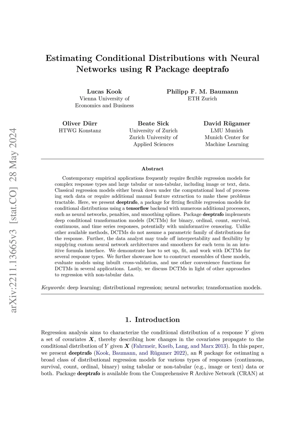 Contemporary empirical applications frequently require flexible regression models for complex response types and large tabular or non-tabular, including image or text, data. Classical regression models either break down under the computational load of processing such data or require additional manual feature extraction to make these problems tractable. Here, we present deeptrafo, a package for fitting flexible regression models for conditional distributions using a tensorflow backend with numerous additional processors, such as neural networks, penalties, and smoothing splines. Package deeptrafo implements deep conditional transformation models (DCTMs) for binary, ordinal, count, survival, continuous, and time series responses, potentially with uninformative censoring. Unlike other available methods, DCTMs do not assume a parametric family of distributions for the response. Further, the data analyst may trade off interpretability and flexibility by supplying custom neural network architectures and smoothers for each term in an intuitive formula interface. We demonstrate how to set up, fit, and work with DCTMs for several response types. We further showcase how to construct ensembles of these models, evaluate models using inbuilt cross-validation, and use other convenience functions for DCTMs in several applications. Lastly, we discuss DCTMs in light of other approaches to regression with non-tabular data.