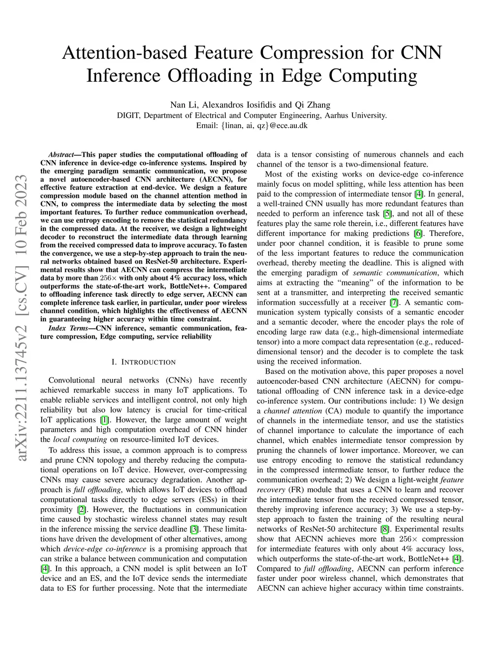 Attention-based Feature Compression for CNN Inference Offloading in Edge