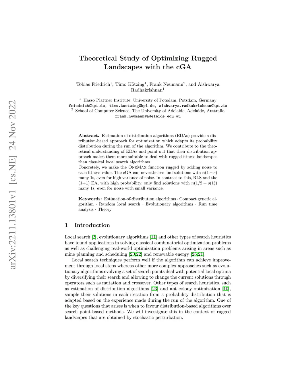 Estimation of distribution algorithms (EDAs) provide a distribution - based approach for optimization which adapts its probability distribution during the run of the algorithm. We contribute to the theoretical understanding of EDAs and point out that their distribution approach makes them more suitable to deal with rugged fitness landscapes than classical local search algorithms. Concretely, we make the OneMax function rugged by adding noise to each fitness value. The cGA can nevertheless find solutions with n(1 - \epsilon) many 1s, even for high variance of noise. In contrast to this, RLS and the (1+1) EA, with high probability, only find solutions with n(1/2+o(1)) many 1s, even for noise with small variance.